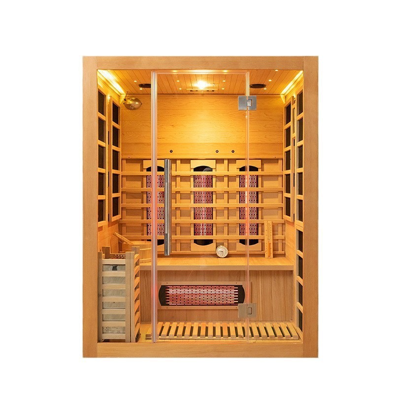 १-३ व्यक्तिको काठ इन्फ्रारेड र स्टीम सौना कोठा तपाईको स्वास्थ्य यात्रालाई बढाउन उन्नत सुविधाहरूले भरिएको छ: इन्फ्रारेड हिटरहरू र टाढा - इन्फ्रारेड ग्राफिन हीटिंग प्लेटहरू (गहिरो, आरामदायी पसिनाको लागि समान, प्रभावकारी ताप प्रदान गर्नुहोस्); अक्सिजन आयोनाइजर (सौना भित्र हावा शुद्ध गर्दछ, ताजा र उत्साहजनक वातावरण सिर्जना गर्दछ); लाइट र स्पिकर पढ्ने (तपाईंको सौना सत्रको मजा लिँदा तपाईंलाई संगीत पढ्न वा सुन्न अनुमति दिन्छ); नियन्त्रण प्यानल (एक व्यक्तिगत अनुभवको लागि तापमान, समय, र अन्य सेटिङहरूको सजिलो समायोजन सक्षम गर्दछ); सौना स्टोभ र लाइट वेभ ट्यूब (बाफ र इन्फ्रारेड ताप उत्पन्न गर्न सँगै काम गर्नुहोस्, स्टीम र टाढा दुवै - इन्फ्रारेड सौना प्रेमीहरूलाई खानपान)।