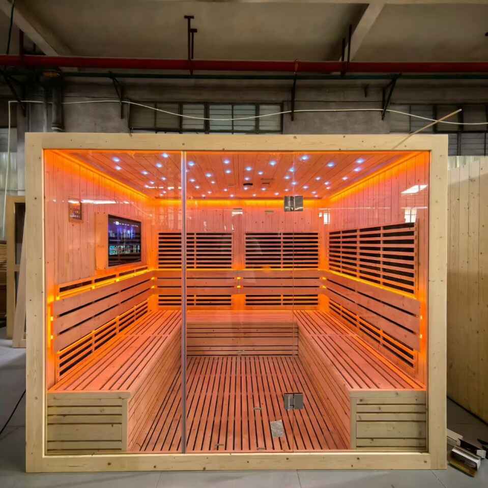 सौना कोठामा लगानी गर्नुहोस् जसले समूह कल्याणलाई पुन: परिभाषित गर्दछ। हाम्रो 5-10 व्यक्ति सौना वुड दूर-इन्फ्रारेड सौना कोठा एलसीडी टिभीको साथ एक उत्पादन भन्दा बढि छ - यो आराम, स्वास्थ्य र एकताको लागि केन्द्र हो। अनुकूलन विकल्पहरू अन्वेषण गर्न र तपाईंको ठाउँमा यो प्रिमियम कल्याण समाधान ल्याउन हामीलाई आज सम्पर्क गर्नुहोस्।