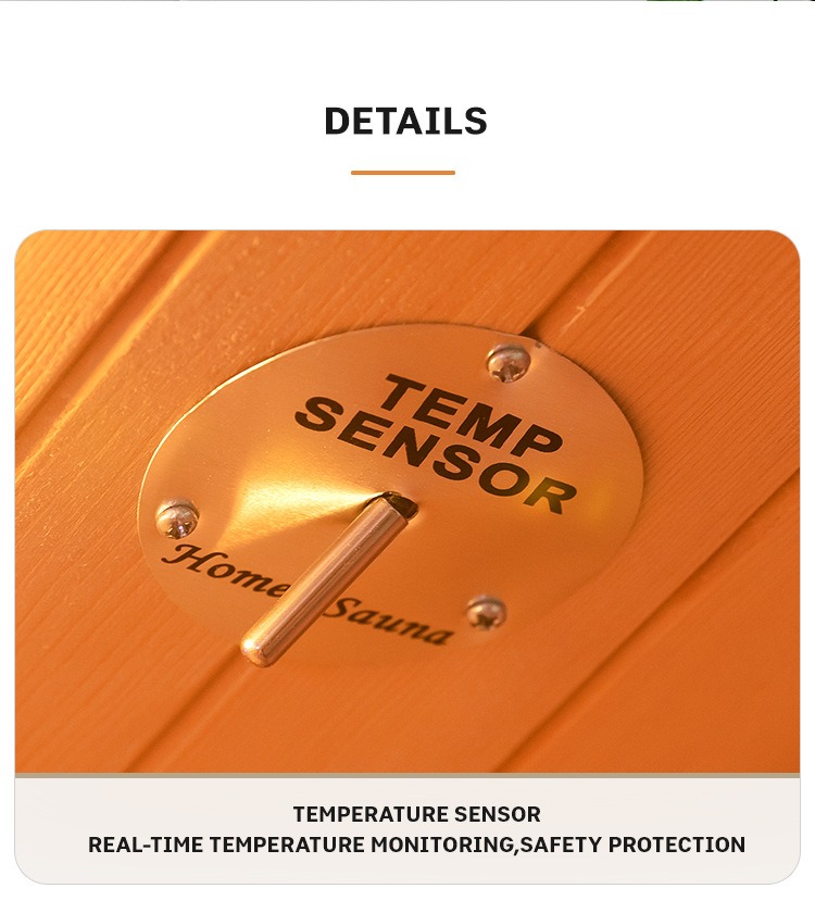 - वास्तविक-समय तापक्रम नियन्त्रण प्रणाली: निर्मित तापमान सेन्सरले सौना सुरक्षा सुनिश्चित गर्न भित्री तापक्रमलाई सही रूपमा निगरानी गर्दछ।