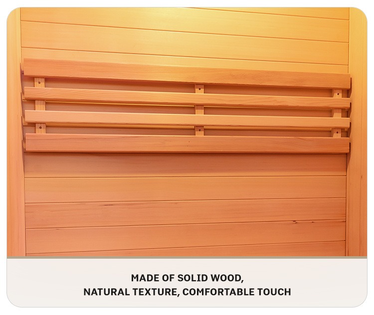 दुई प्रिमियम क्यानेडियन काठ, हेमलोक र रेड देवदार, चयन गरिएको छ। काठ कडा र टिकाउ छ, स्पष्ट प्राकृतिक बनावट र समान रूप देखि सुरुचिपूर्ण रंग संग। काठको प्रत्येक टुक्राको प्राकृतिक गुणहरूले सौनालाई एक अद्वितीय बनावट प्रदान गर्दछ, प्राकृतिक र उच्च-अन्तको सौन्दर्य जीनहरू तपाईंको घरको कल्याण स्थानमा इन्जेक्ट गर्दै। घरको लागि इन्डोर इन्फ्रारेड सौना।